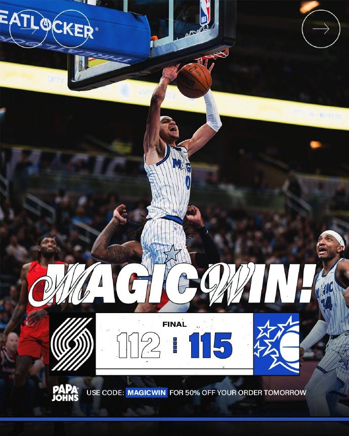 凭借贝恩的高难度压哨绝杀三分,魔术今天在主场115-112险胜开拓者,战绩来到5胜6负,而开拓者战绩则变成5胜5负。今天全场比赛都十分胶着,魔术下半场虽然建立起两位数的领先优势,但最后又被开拓者追平,好在最终还是绝杀了开拓者。